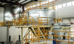 壓力噴霧干燥的原理是空氣經(jīng)過(guò)濾和加熱后進(jìn)入干燥器頂部的空氣分配器,使得熱空氣呈螺旋狀均勻地進(jìn)入干燥室。料液經(jīng)塔體底部的高壓噴槍霧化成極霧狀液珠,與熱空氣并流接觸,在極短的時(shí)間內(nèi)可干燥為成品。成品連續(xù)地由干燥塔底部和旋風(fēng)分離器中輸出,廢氣由風(fēng)機(jī)排空。