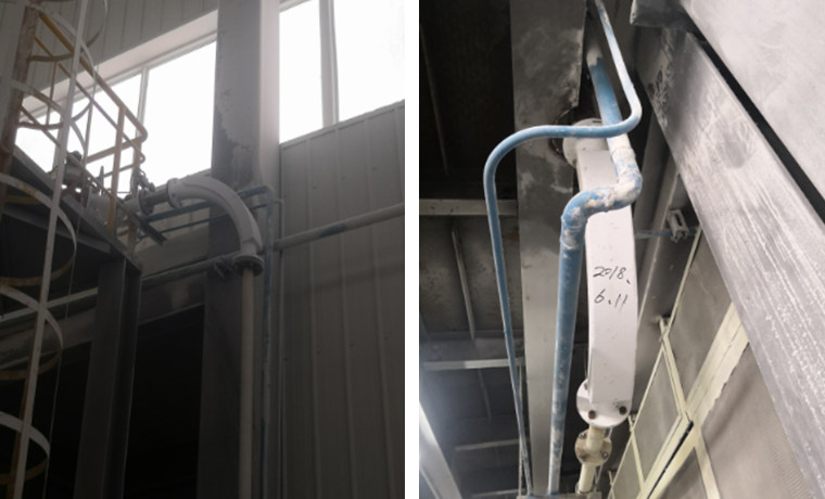 在粉末輸送系統(tǒng)中,采用大量的管道。這些管道通常都存在嚴重的磨損問題。我公司在遼陽大連的一家客戶就是生產(chǎn)陶瓷纖維產(chǎn)品。他們的主要原料是氧化鋁粉、剛玉沙、白云石等。以前,他們的輸送管道都是采用普通加厚的碳鋼管。使用壽命短,特別是彎頭,一般使用7到10天就會磨穿。