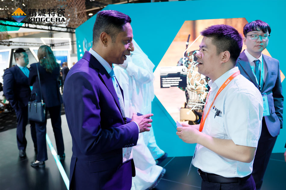 黃部長用自己的努力讓精城外貿走出了第一步,他的能力得到了公司領導的高度認可,于是公司為黃部長創造機會,讓他參加各種國際展會,也是在這些展會中,黃部長找到了精城外貿發展的契機。在一次展會中,有外國客戶帶著泵車管道咨詢防磨方案,而當時國內國外都還沒有用陶瓷做泵管防磨的先例,黃部長敏銳的察覺到了其中的契機,立刻向公司領導匯報了自己的想法并得到公司領導的大力支持,從此,精城開始研發生產耐磨陶瓷泵管。經過四五年的不斷研發改進,精城的耐磨陶瓷泵管趨于成熟,陶瓷泵管也成了精城打開海外市場的拳頭產品。后來在接洽一個海外礦山客戶時,客戶提出耐磨陶瓷雖然耐磨,但是抗沖擊能力不足,無法滿足礦山需求,希望精城能夠開發出更好的產品幫他們解決問題。黃部長將客戶的訴求帶回公司,精城經過不斷研發試驗,最終將氧化鋁氧化鋯復合,生產出了耐磨損抗沖擊的ZTA陶瓷,ZTA陶瓷后來也成了暢銷國內外的熱門產品。