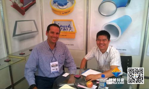 湖南精城特種陶瓷有限公司由營銷部副部長黃永泉帶隊,組織參加了澳大利亞礦業展。在展會上,我們展出了耐磨陶瓷管道、料斗、陶瓷襯板等傳統產品,同時也有耐磨陶瓷滾筒包膠、大塊厚瓷等新產品。